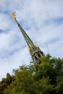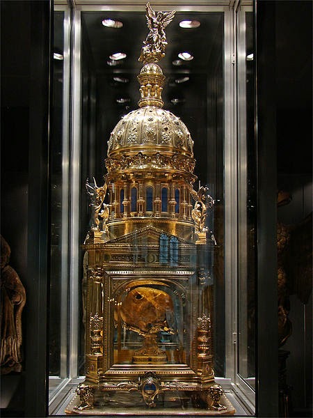 Iglesia y Abadía Monte Saint-Michel, Francia. La consagración del oratorio tuvo lugar el 16 de octubre de 709, en la cuspide se observa una imagen del Arcangel Miguel quien motivo a Auberto de Avranches a realizar dicha iglesia, por último la reliquia del Obispo Avranches Siglo VIII