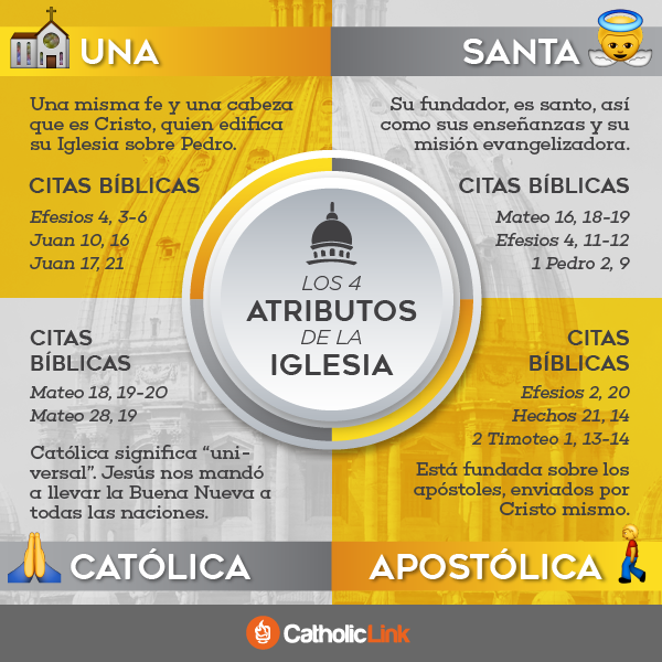 Esta es la única Iglesia de Cristo, de la que confesamos en el Credo que es una, santa, católica y apostólica» (LG 8). Estos cuatro atributos, inseparablemente unidos entre sí (cf. DS 2888), indican rasgos esenciales de la Iglesia y de su misión. La Iglesia no los tiene por ella misma; es Cristo, quien, por el Espíritu Santo, da a la Iglesia el ser una, santa, católica y apostólica, y Él es también quien la llama a ejercitar cada una de estas cualidades