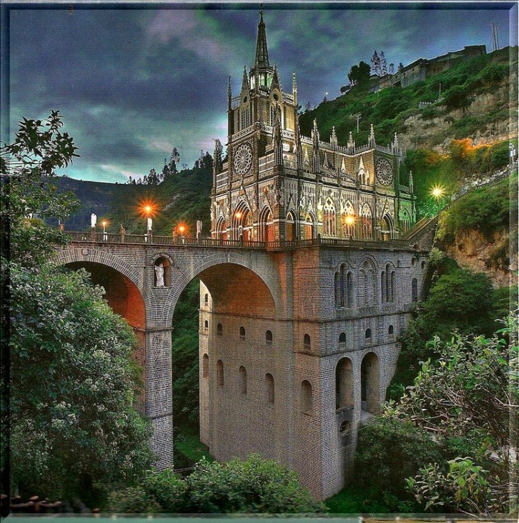 El Santuario de Nuestra Señora del Rosario de las Lajas, en donde se encuentra Nuestra Señora de las Lajas, se ubica en Ipiales, Departamento de Nariño, sur de la República de Colombia. siglo XVIII