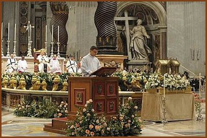 El Papa Benedicto XVI en su exhortación apostólica Verbum Domini, nº 68 nos recuerda: Se debe prestar una atención especial al ambón como lugar litúrgico desde el que se proclama la Palabra de Dios. Ha de colocarse en un sitio bien visible, y al que se dirija espontáneamente la atención de los fieles durante la liturgia de la Palabra. Conviene que sea fijo, como elemento escultórico en armonía estética con el altar, de manera que represente visualmente el sentido teológico de la doble mesa de la Palabra y de la Eucaristía. Desde el ambón se proclaman las lecturas, el salmo responsorial y el pregón pascual; pueden hacerse también desde él la homilía y las intenciones de la oración universal.