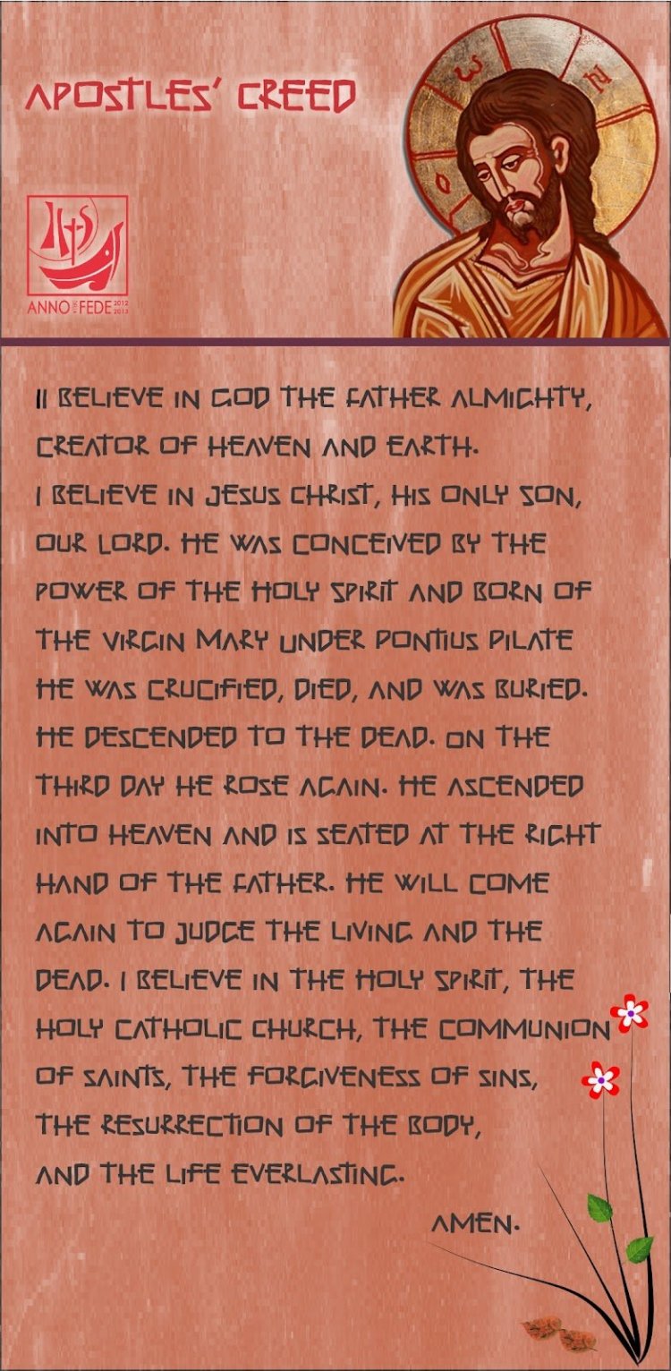 Creo en un solo Señor Jesucristo, Hijo Unigénito de Dios, Engendrado del Padre antes de todos los siglos, Dios de Dios, Luz de Luz, Verdadero Dios de Dios Verdadero, Engendrado, no hecho, consubstancial con el Padre, por el quien todas las cosas fueron hechas, El cual por amor a nosotros y por nuestra salud descendió del cielo y tomando nuestra carne de la virgen María, por el Espíritu Santo, fue hecho hombre, y fue crucificado por nosotros bajo el poder de Poncio Pilatos, padeció, y fue sepultado y al tercer dia resucitó según las Escrituras. Subió a los cielos y está sentado a la diestra de Dios Padre, y vendrá otra vez con gloria a juzgar a los vivos y a los muertos; y su reino no tendrá fin.
