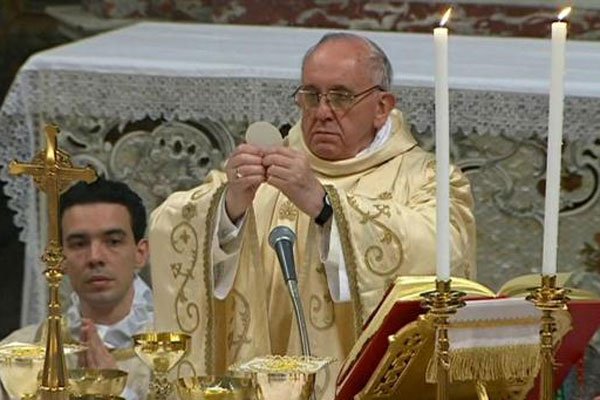 «No es el hombre quien hace que las cosas ofrecidas se conviertan en Cuerpo y Sangre de Cristo, sino Cristo mismo que fue crucificado por nosotros. El sacerdote, figura de Cristo, pronuncia estas palabras, pero su eficacia y su gracia provienen de Dios. Esto es mi Cuerpo, dice. Esta palabra transforma las cosas ofrecidas (De proditione Iudae homilia 1, 6).