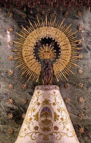 Según una piadosa y antigua tradición, ya desde los albores de su conversión, los primitivos cristianos levantaron una ermita en honor de la Virgen María a las orillas del Ebro, en la ciudad de Zaragoza. La primitiva y pequeña capilla, con el correr de los siglos, se ha convertido hoy en una basílica grandiosa que acoge, como centro vivo y permanente de peregrinaciones, a innumerables fieles que, desde todas las partes del mundo, vienen a rezar a la Virgen y a venerar su Pilar. La advocación de nuestra Señora del Pilar ha sido objeto de un especial culto por parte de los españoles: difícilmente podrá encontrarse en el amplio territorio patrio un pueblo que no guarde con amor la pequeña imagen sobre la santa columna. Muchas instituciones la veneran también como patrona. Muy por encima de milagros espectaculares, de manifestaciones clamorosas y de organizaciones masivas, la Virgen del Pilar es invocada como refugio de pecadores, consoladora de los afligidos, madre de España. Su quehacer es, sobre todo, espiritual. Y su basílica, en Zaragoza, es un lugar privilegiado de oración, donde sopla con fuerza el Espíritu.
