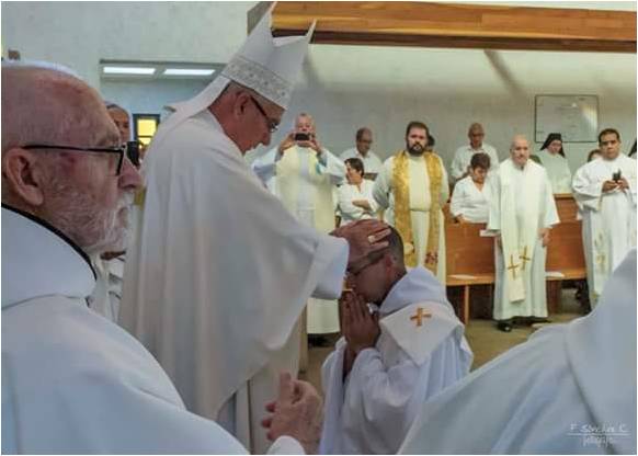 El rito esencial del sacramento del Orden está constituido, para los tres grados, por la imposición de manos del obispo sobre la cabeza del ordenando, así como por una oración consecratoria específica que pide a Dios la efusión del Espíritu Santo y de sus dones apropiados al ministerio para el cual el candidato es ordenado (cf Pío XII, Const. ap. Sacramentum Ordinis, DS 3858)