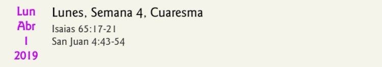El padre cayó en la cuenta de que esa era la hora en que Jesús le había dicho: «Tu hijo vive». Y creyó él con toda su familia. Este segundo signo lo hizo Jesús al llegar de Judea a Galilea.