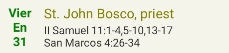 «El reino de Dios se parece a un hombre que echa semilla en la tierra. Él duerme de noche y se levanta de mañana; la semilla germina y va creciendo, sin que él sepa cómo. La tierra va produciendo fruto sola: primero los tallos, luego la espiga, después el grano. Cuando el grano está a punto, se mete la hoz, porque ha llegado la siega».