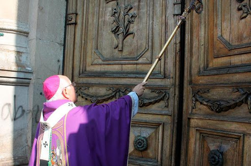 El pontífice y el clero responden: Es el Señor de los Ejercitos, que es el Rey de la Gloria, y ellos añaden: Abrid, abrid, abrid!!
