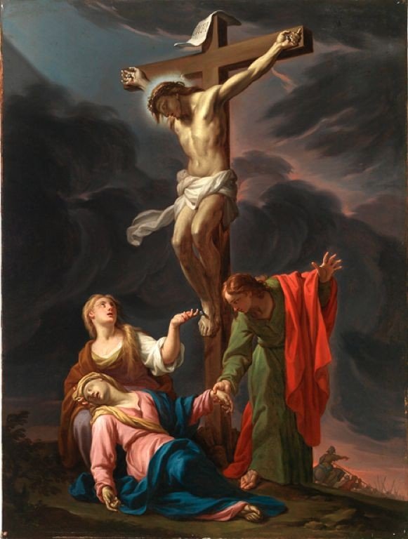 Jesucristo está doblado sobre los surcos de tierra,