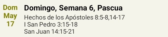 «Si me amáis, guardaréis mis mandamientos. Y yo le pediré al Padre que os dé otro Paráclito, que esté siempre con vosotros, el Espíritu de la verdad. El mundo no puede recibirlo, porque. no lo ve ni lo conoce; vosotros, en cambio, lo conocéis, porque mora con vosotros y está en vosotros. No os dejaré huérfanos, volveré a vosotros. Dentro de poco el mundo no me verá, pero vosotros me veréis y viviréis, porque yo sigo viviendo. Entonces sabréis que yo estoy en mi Padre, y vosotros en mí y yo en vosotros. El que acepta mis mandamientos y los guarda, ese me ama; y el que me ama será amado por mi Padre, y yo también lo amaré y me manifestaré a él».