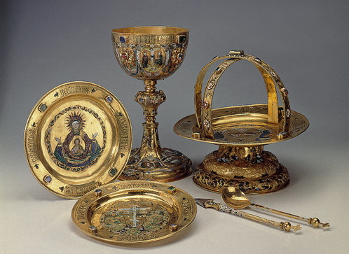Plato redondo donde se pone la Sagrada Hostia. Debe ser de metal precioso como el cáliz y también debe ser consagrado exclusiva y definitivamente para el uso en la Santa Misa. Platillo redondo de metal en el que se coloca la hostia durante la Misa. Con el tiempo ha disminuido su tamaño. Antiguamente eran cóncavas en la cara interna, y tenían bajorrelieves y adornos en sus bordes, pero paulatinamente han perdido sus adornos hasta volverse platos lisos y casi planos.