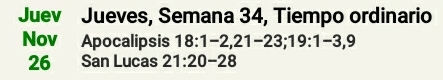 Habrá signos en el sol y la luna y las estrellas, y en la tierra angustia de las gentes, perplejas por el estruendo del mar y el oleaje, desfalleciendo los hombres por el miedo y la ansiedad ante lo que se le viene encima al mundo, pues las potencias del cielo serán sacudidas.