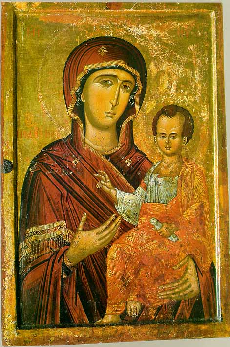 Desde el sí dado por la fe en la Anunciación y mantenido sin vacilar al pie de la cruz, la maternidad de María se extiende desde entonces a los hermanos y a las hermanas de su Hijo, “que son peregrinos todavía y que están ante los peligros y las miserias” (LG 62). Jesús, el único Mediador, es el Camino de nuestra oración; María, su Madre y nuestra Madre es pura transparencia de Él: María “muestra el Camino” [Odighitria], es su Signo, según la iconografía tradicional de Oriente y Occidente