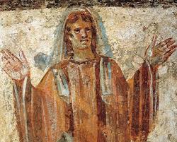 esta figura, representada con los brazos abiertos, es símbolo del alma que vive ya en la paz divina.