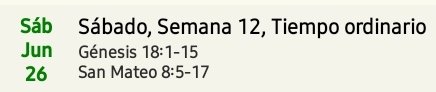 En aquel tiempo, al entrar Jesús en Cafarnaún, un centurión se le acercó diciéndole: –Señor, tengo en casa un criado que está en cama paralítico y sufre mucho. El le contestó: –Voy yo a curarlo. Pero el centurión le replicó: –Señor, ¿quién soy yo para que entres bajo mi techo? Basta que lo digas de palabra y mi criado quedará sano. Porque yo también vivo bajo disciplina y tengo soldados a mis órdenes: y le digo a uno «ve», y va; al otro, «ven», y viene; a mi criado, «haz esto», y lo hace. Cuando Jesús lo oyó quedó admirado y dijo a los que le seguían: –Os aseguro que en Israel no he encontrado en nadie tanta fe. Os digo que vendrán muchos de Oriente y Occidente y se sentarán con Abrahán, Isaac y Jacob en el Reino de los Cielos; en cambio a los ciudadanos del Reino los echarán afuera, a las tinieblas. Allí será el llanto y el rechinar de dientes. Y al centurión le dijo: –Vuelve a casa, que se cumpla lo que has creído. Y en aquel momento se puso bueno el criado. Al llegar Jesús a casa de Pedro, encontró a la suegra en cama con fiebre; la cogió de la mano, y se le pasó la fiebre; se levantó y se puso a servirles. Al anochecer, le llevaron muchos endemoniados; él con su palabra expulsó los espíritus y curó a todos los enfermos. Así se cumplió lo que dijo el profeta Isaías: «El tomó nuestras dolencias y cargó con nuestras enfermedades».