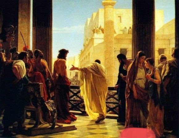 Intervención de Prócula, esposa de Pilato «Mientras estaba sentado en el tribunal, su mujer le mandó decir: No te metas con este justo, porque hoy, en sueños he sufrido por su causa» (Mt 27, 19). La Vulgata dice «nihil tibi et iusto illi», dando un matiz más fuerte, «no tengas nada que ver con ese justo», aclaremos que la palabra griega dikaios también admite la traducción jurídica de inocente o, simplemente «santo»