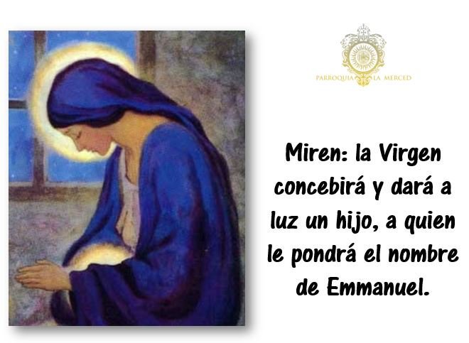 Evangelio según san Mateo, 1: 22- 23 Mas todo esto fue hecho para que se cumpliese lo que habló el Señor por el Profeta, que dice: He aquí la Virgen concebirá, y parirá hijo: y llamarán su nombre Emmanuel, que quiere decir «con nosotros Dios». (v. 22- 23)