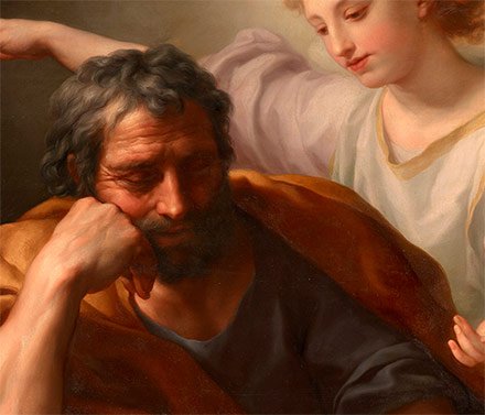 Evangelio según san Mateo, 1: 24- 25 Y despertando José del sueño, hizo como el Angel del Señor le había mandado y recibió a su mujer. Y no la conoció hasta que parió a su hijo primogénito y llamó su nombre Jesús. (v. 24- 25)
