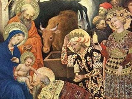 Evangelio según san Mateo, 2: 10- 11 Y cuando vieron la estrella se regocijaron en gran manera. Y entrando en la casa hallaron al niño con María su Madre, y postrándose, le adoraron; y abiertos sus tesoros, le ofrecieron dones, oro, incienso y mirra. (vv. 10- 11)
