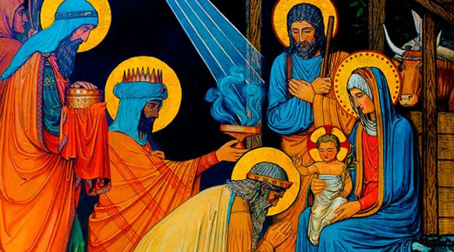 Evangelio según san Mateo, 2:10-11 Y cuando vieron la estrella se regocijaron en gran manera. Y entrando en la casa hallaron al niño con María su Madre, y postrándose, le adoraron; y abiertos sus tesoros, le ofrecieron dones, oro, incienso y mirra. (vv. 10-11)