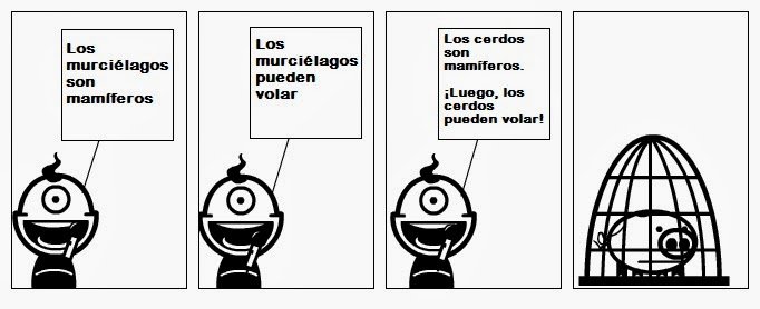 Se da cuando se deriva una conclusión que no se sigue necesariamente de las premisas del razonamiento. Ejemplo: “Todo perro es un mamífero. Ese animal es un mamífero. Luego, ese animal es un perro”