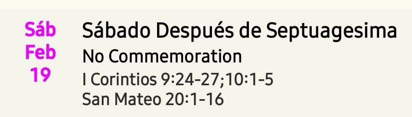 «En efecto, el Reino de los Cielos es semejante a un propietario que salió a primera hora de la mañana a contratar obreros para su viña. Habiéndose ajustado con los obreros en un denario al día, los envió a su viña. Salió luego hacia la hora tercia y al ver a otros que estaban en la plaza parados, les dijo: `Id también vosotros a mi viña, y os daré lo que sea justo.’ Y ellos fueron. Volvió a salir a la hora sexta y a la nona e hizo lo mismo. Todavía salió a eso de la hora undécima y, al encontar a otros que estaban allí, les dice: `¿Por qué estáis aquí todo el día parados?’ Dícenle: `Es que nadie nos ha contratado.’ Díceles: `Id también vosotros a la viña.’ Al atardecer, dice el dueño de la viña a su administrador: `Llama a los obreros y págales el jornal, empezando por los últimos hasta los primeros.’ Vinieron, pues, los de la hora undécima y cobraron un denario cada uno. Al venir los primeros pensaron que cobrarían más, pero ellos también cobraron un denario cada uno Y al cobrarlo, murmuraban contra el propietario, diciendo: `Estos últimos no han trabajado más que una hora, y les pagas como a nosotros, que hemos aguantado el peso del día y el calor.’ Pero él contestó a uno de ellos: `Amigo, no te hago ninguna injusticia. ¿No te ajustaste conmigo en un denario? Pues toma lo tuyo y vete. Por mi parte, quiero dar a este último lo mismo que a ti ¿Es que no puedo hacer con lo mío lo que quiero? ¿O va a ser tu ojo malo porque yo soy bueno?’. Así, los últimos serán primeros y los primeros, últimos.»