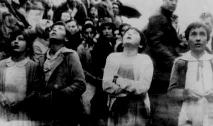 En 1917 la Virgen se aparece a tres pastorcitos en Fátima, Portugal. Allí pidió a los obispos del mundo que se unieran para consagrar a Rusia a su Inmaculado Corazón. Advirtió que de no hacerse Rusia difundiría sus errores por todo el mundo y habría serias consecuencias. Esto ocurrió antes de la revolución soviética. Aparición aprobada por la Iglesia.