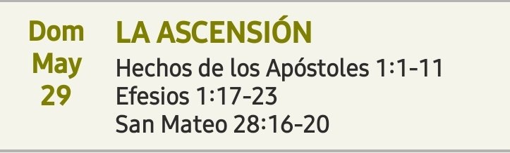 Por su parte, los once discípulos marcharon a Galilea, al monte que Jesús les había indicado. Y al verlo le adoraron; algunos sin embargo dudaron Jesús se acercó a ellos y les habló así: «Me ha sido dado todo poder en el cielo y en la tierra. Id, pues, y haced discípulos a todas las gentes bautizándolas en el nombre del Padre y del Hijo y del Espíritu Santo, y enseñándoles a guardar todo lo que yo os he mandado. Y he aquí que yo estoy con vosotros todos los días hasta el fin del mundo.
