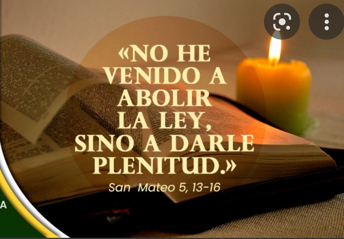 Evangelio según san Mateo, 5: 17- 19 «No penséis que he venido a destruir la ley o los profetas; no he venido a destruirlos, sino a darles cumplimiento. Porque en verdad os digo que el cielo y la tierra no pasarán, sin que se cumpla todo el contenido de la ley hasta una jota o un ápice. Por lo cual quien quebrantare uno de estos mandamientos muy pequeños y enseñare así a los hombres, muy pequeño será llamado en el reino de los cielos; mas quien hiciere y enseñare, éste será llamado grande en el reino de los cielos». (vv. 17- 19)