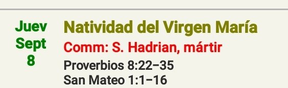 Libro del origen de Jesucristo, hijo de David, hijo de Abrahán: Abrahán engendró a Isaac, Isaac engendró a Jacob, Jacob engendró a Judá y a sus hermanos, Judá engrendró, de Tamar, a Fares y a Zara, Fares engendró a Esrón, Esrón engendró a Arán, Arán engendró a Aminadab, Aminadab engrendró a Naasón, Naasón engendró a Salmón, Salmón engendró, de Rajab, a Booz, Booz engendró, de Rut, a Obed, Obed engendró a Jesé, Jesé engendró al rey David. David engendró, de la mujer de Urías, a Salomón, Salomón engendró a Roboán, Roboán engendró a Abiá, Abiá engendró a Asaf, Asaf engendró a Josafat, Josafat engendró a Jorán, Jorán engendró a Ozías, Ozías engendró a Joatán, Joatán engendró a Acaz, Acaz engendró a Ezequías, Ezequías engendró a Manasés, Manasés engendró a Amón, Amón engendró a Josías, Josías engendró a Jeconías y a sus hermanos, cuando la deportación a Babilonia. Después de la deportación a Babilonia, Jeconías engendró a Salatiel, Salatiel engendró a Zorobabel, Zorobabel engendró a Abiud, Abiud engendró a Eliaquín, Eliaquín engendró a Azor, Azor engendró a Sadoc, Sadoc engendró a Ajín, Ajín engendró a Eliud, Eliud engendró a Eleazar, Eleazar engendró a Matán, Matán engendró a Jacob, y Jacob engendró a José, el esposo de María, de la que nació Jesús, llamado Cristo.