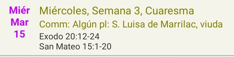Entonces se acercan a Jesús algunos fariseos y escribas venidos de Jerusalén, y le dicen: «¿Por qué tus discípulos transgreden la tradición de los antepasados? Pues no se lavan las manos a la hora de comer.» Él les respondió: «Y vosotros, ¿por qué transgredís el mandamiento de Dios por vuestra tradición? Porque Dios dijo: Honra a tu padre y a tu madre, y: El que maldiga a su padre o a su madre, sea castigado con la muerte. Pero vosotros decís: El que diga a su padre o a su madre: `Lo que de mí podrías recibir como ayuda es ofrenda’, ése no tendrá que honrar a su padre y a su madre. Así habéis anulado la palabra de Dios por vuestra tradición Hipócritas, bien profetizó de vosotros Isaías cuando dijo: Este pueblo me honra con los labios, pero su corazón está lejos de mí. En vano me rinden culto, ya que enseñan doctrinas que son preceptos de hombres.» Luego llamó a la gente y les dijo: «Oíd y entended. No es lo que entra en la boca lo que contamina al hombre; sino lo que sale de la boca, eso es lo que contamina al hombre.» Entonces se acercan los discípulos y le dicen: «¿Sabes que los fariseos se han escandalizado al oír tu palabra?» Él les respondió: «Toda planta que no haya plantado mi Padre celestial será arrancada de raíz. Dejadlos: son ciegos y guías de ciegos. Y si un ciego guía a otro ciego, los dos caerán en el hoyo.» Tomando Pedro la palabra, le dijo: «Explícanos la parábola.» Él dijo: «¿También vosotros estáis todavía sin inteligencia? ¿No comprendéis que todo lo que entra en la boca pasa al vientre y luego se echa al excusado? En cambio lo que sale de la boca viene de dentro del corazón, y eso es lo que contamina al hombre. Porque del corazón salen las intenciones malas, asesinatos, adulterios, fornicaciones, robos, falsos testimonios, injurias. Eso es lo que contamina al hombre; que el comer sin lavarse las manos no contamina al hombre.»