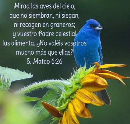 Evangelio según san Mateo, 6: 26- 27 «Mirad las aves del cielo que no siembran, ni siegan, ni amontonan en hórreos; y vuestro padre celestial las alimenta. :Pues no sois vosotros más que ellas? Y quién de vosotros discurriendo puede añadir un codo a su estatura?» (vv 26-27)