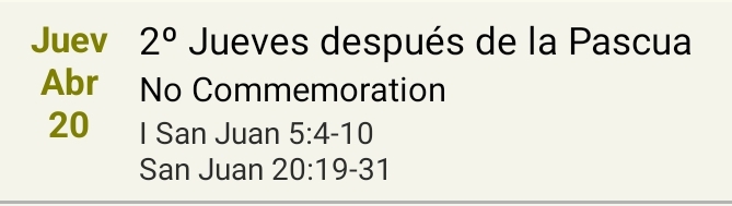 Al atardecer de aquel día, el primero de la semana, estando cerradas, por miedo a los judíos, las puertas del lugar donde se encontraban los discípulos, se presentó Jesús en medio de ellos y les dijo: «La paz con vosotros.» Dicho esto, les mostró las manos y el costado. Los discípulos se alegraron de ver al Señor Jesús les dijo otra vez: «La paz con vosotros. Como el Padre me envió, también yo os envío.» Dicho esto, sopló y les dijo: «Recibid el Espíritu Santo. A quienes perdonéis los pecados, les quedan perdonados; a quienes se los retengáis, les quedan retenidos.» Tomás, uno de los Doce, llamado el Mellizo, no estaba con ellos cuando vino Jesús. Los otros discípulos le decían: «Hemos visto al Señor.» Pero él les contestó: «Si no veo en sus manos la señal de los clavos y no meto mi dedo en el agujero de los clavos y no meto mi mano en su costado, no creeré.» Ocho días después, estaban otra vez sus discípulos dentro y Tomás con ellos. Se presentó Jesús en medio estando las puertas cerradas, y dijo: «La paz con vosotros.» Luego dice a Tomás: «Acerca aquí tu dedo y mira mis manos; trae tu mano y métela en mi costado, y no seas incrédulo sino creyente.» Tomás le contestó: «Señor mío y Dios mío.» Dícele Jesús: «Porque me has visto has creído. Dichosos los que no han visto y han creído.» Jesús realizó en presencia de los discípulos otros muchos signos que no están escritos en este libro. Éstos han sido escritos para que creáis que Jesús es el Cristo, el Hijo de Dios, y para que creyendo tengáis vida en su nombre.