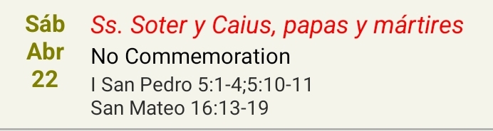 Llegado Jesús a la región de Cesarea de Filipo, hizo esta pregunta a sus discípulos: «¿Quién dicen los hombres que es el Hijo del hombre?» Ellos dijeron: «Unos, que Juan el Bautista; otros, que Elías; otros, que Jeremías o uno de los profetas.» Díceles él: «Y vosotros ¿quién decís que soy yo?» Simón Pedro contestó: «Tú eres el Cristo, el Hijo de Dios vivo.» Replicando Jesús le dijo: «Bienaventurado eres Simón, hijo de Jonás, porque no te ha revelado esto la carne ni la sangre, sino mi Padre que está en los cielos. Y yo a mi vez te digo que tú eres Pedro, y sobre esta piedra edificaré mi Iglesia, y las puertas del Hades no prevalecerán contra ella. A ti te daré las llaves del Reino de los Cielos; y lo que ates en la tierra quedará atado en los cielos, y lo que desates en la tierra quedará desatado en los cielos.»