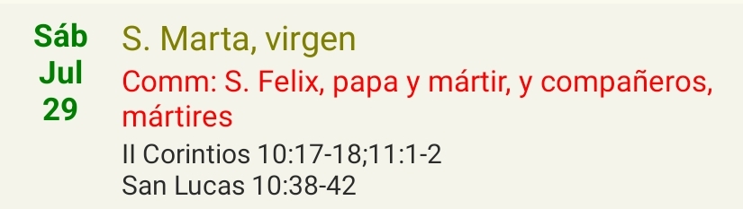 Yendo ellos de camino, entró en un pueblo; y una mujer, llamada Marta, le recibió en su casa. Tenía ella una hermana llamada María, que, sentada a los pies del Señor, escuchaba su palabra, mientras Marta estaba atareada en muchos quehaceres. Al fin, se paró y dijo: «Señor, ¿no te importa que mi hermana me deje sola en el trabajo? Dile, pues, que me ayude.» Le respondió el Señor: «Marta, Marta, te preocupas y te agitas por muchas cosas; y hay necesidad de pocas, o mejor, de una sola.María ha elegido la mejor parte, que no le será quitada.»