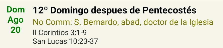 Volviéndose a los discípulos, les dijo aparte: «¡Dichosos los ojos que ven lo que veis! Porque os digo que muchos profetas y reyes quisieron ver lo que vosotros veis, pero no lo vieron, y oír lo que vosotros oís, pero no lo oyeron.» Se levantó un legista y dijo, para ponerle a prueba: «Maestro, ¿qué he de hacer para tener en herencia vida eterna?» Él le dijo: «¿Qué está escrito en la Ley? ¿Cómo lees?» Respondió: «Amarás al Señor tu Dios con todo tu corazón, con toda tu alma, con todas tus fuerzas y con toda tu mente; y a tu prójimo como a ti mismo.» Díjole entonces: «Bien has respondido. Haz eso y vivirás.» Pero él, queriendo justificarse, dijo a Jesús: «Y ¿quién es mi prójimo?» Jesús respondió: «Bajaba un hombre de Jerusalén a Jericó y cayó en manos de salteadores que, después de despojarle y darle una paliza, se fueron, dejándole medio muerto. Casualmente, bajaba por aquel camino un sacerdote y, al verle, dio un rodeo. De igual modo, un levita que pasaba por aquel sitio le vio y dio un rodeo. Pero un samaritano que iba de camino llegó junto a él, y al verle tuvo compasión. Acercándose, vendó sus heridas, echando en ellas aceite y vino; y le montó luego sobre su propia cabalgadura, le llevó a una posada y cuidó de él. Al día siguiente, sacó dos denarios y se los dio al posadero, diciendo: `Cuida de él y, si gastas algo más, te lo pagaré cuando vuelva.’ ¿Quién de estos tres te parece que fue prójimo del que cayó en manos de los salteadores?» Él dijo: «El que practicó la misericordia con él.» Díjole Jesús: «Vete y haz tú lo mismo.»San Lucas 10:23-37