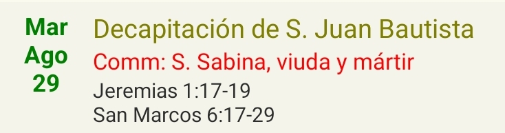 Es que Herodes era el que había enviado a prender a Juan y le había encadenado en la cárcel por causa de Herodías, la mujer de su hermano Filipo, con quien Herodes se había casado. Porque Juan decía a Herodes: «No te está permitido tener la mujer de tu hermano.» Herodías le aborrecía y quería matarle, pero no podía, pues Herodes temía a Juan, sabiendo que era hombre justo y santo, y le protegía; y al oírle, quedaba muy perplejo, y le escuchaba con gusto. Y llegó el día oportuno, cuando Herodes, en su cumpleaños, dio un banquete a sus magnates, a los tribunos y a los principales de Galilea. Entró la hija de la misma Herodías, danzó, y gustó mucho a Herodes y a los comensales. El rey, entonces, dijo a la muchacha: «Pídeme lo que quieras y te lo daré.» Y le juró: «Te daré lo que me pidas, hasta la mitad de mi reino.» Salió la muchacha y preguntó a su madre: «¿Qué voy a pedir?» Y ella le dijo: «La cabeza de Juan el Bautista.» Entrando al punto apresuradamente adonde estaba el rey, le pidió: «Quiero que ahora mismo me des, en una bandeja, la cabeza de Juan el Bautista.» El rey se llenó de tristeza, pero no quiso desairarla a causa del juramento y de los comensales. Y al instante mandó el rey a uno de su guardia, con orden de traerle la cabeza de Juan. Se fue y le decapitó en la cárcel y trajo su cabeza en una bandeja, y se la dio a la muchacha, y la muchacha se la dio a su madre. Al enterarse sus discípulos, vinieron a recoger el cadáver y le dieron sepultura.