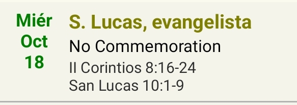 Después de esto, designó el Señor a otros setenta y dos y los envió por delante, de dos en dos, a todas las ciudades y sitios adonde él había de ir Y les dijo: «La mies es mucha y los obreros pocos. Rogad, pues, al Dueño de la mies que envíe obreros a su mies. Id; mirad que os envío como corderos en medio de lobos. No llevéis bolsa, ni alforja, ni sandalias. Y no saludéis a nadie en el camino. En la casa en que entréis, decid primero: `Paz a esta casa.’ Y si hubiere allí un hijo de paz, vuestra paz reposará sobre él; si no, se volverá a vosotros Permaneced en la misma casa, comed y bebed lo que tengan, porque el obrero merece su salario. No vayáis de casa en casa. En la ciudad en que entréis y os reciban, comed lo que os pongan; curad los enfermos que haya en ella, y decidles: `El Reino de Dios está cerca de vosotros.’