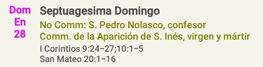 «En efecto, el Reino de los Cielos es semejante a un propietario que salió a primera hora de la mañana a contratar obreros para su viña. Habiéndose ajustado con los obreros en un denario al día, los envió a su viña. Salió luego hacia la hora tercia y al ver a otros que estaban en la plaza parados, les dijo: `Id también vosotros a mi viña, y os daré lo que sea justo.’ Y ellos fueron. Volvió a salir a la hora sexta y a la nona e hizo lo mismo. Todavía salió a eso de la hora undécima y, al encontar a otros que estaban allí, les dice: `¿Por qué estáis aquí todo el día parados?’ Dícenle: `Es que nadie nos ha contratado.’ Díceles: `Id también vosotros a la viña.’ Al atardecer, dice el dueño de la viña a su administrador: `Llama a los obreros y págales el jornal, empezando por los últimos hasta los primeros.’ Vinieron, pues, los de la hora undécima y cobraron un denario cada uno. Al venir los primeros pensaron que cobrarían más, pero ellos también cobraron un denario cada uno Y al cobrarlo, murmuraban contra el propietario, diciendo: `Estos últimos no han trabajado más que una hora, y les pagas como a nosotros, que hemos aguantado el peso del día y el calor.’ Pero él contestó a uno de ellos: `Amigo, no te hago ninguna injusticia. ¿No te ajustaste conmigo en un denario? Pues toma lo tuyo y vete. Por mi parte, quiero dar a este último lo mismo que a ti ¿Es que no puedo hacer con lo mío lo que quiero? ¿O va a ser tu ojo malo porque yo soy bueno?’. Así, los últimos serán primeros y los primeros, últimos.»