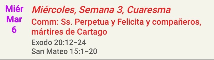 Entonces se acercan a Jesús algunos fariseos y escribas venidos de Jerusalén, y le dicen: «¿Por qué tus discípulos transgreden la tradición de los antepasados? Pues no se lavan las manos a la hora de comer.» Él les respondió: «Y vosotros, ¿por qué transgredís el mandamiento de Dios por vuestra tradición? Porque Dios dijo: Honra a tu padre y a tu madre, y: El que maldiga a su padre o a su madre, sea castigado con la muerte. Pero vosotros decís: El que diga a su padre o a su madre: `Lo que de mí podrías recibir como ayuda es ofrenda’, ése no tendrá que honrar a su padre y a su madre. Así habéis anulado la palabra de Dios por vuestra tradición Hipócritas, bien profetizó de vosotros Isaías cuando dijo: Este pueblo me honra con los labios, pero su corazón está lejos de mí. En vano me rinden culto, ya que enseñan doctrinas que son preceptos de hombres.» Luego llamó a la gente y les dijo: «Oíd y entended. No es lo que entra en la boca lo que contamina al hombre; sino lo que sale de la boca, eso es lo que contamina al hombre.» Entonces se acercan los discípulos y le dicen: «¿Sabes que los fariseos se han escandalizado al oír tu palabra?» Él les respondió: «Toda planta que no haya plantado mi Padre celestial será arrancada de raíz. Dejadlos: son ciegos y guías de ciegos. Y si un ciego guía a otro ciego, los dos caerán en el hoyo.» Tomando Pedro la palabra, le dijo: «Explícanos la parábola.» Él dijo: «¿También vosotros estáis todavía sin inteligencia? ¿No comprendéis que todo lo que entra en la boca pasa al vientre y luego se echa al excusado? En cambio lo que sale de la boca viene de dentro del corazón, y eso es lo que contamina al hombre. Porque del corazón salen las intenciones malas, asesinatos, adulterios, fornicaciones, robos, falsos testimonios, injurias. Eso es lo que contamina al hombre; que el comer sin lavarse las manos no contamina al hombre.»