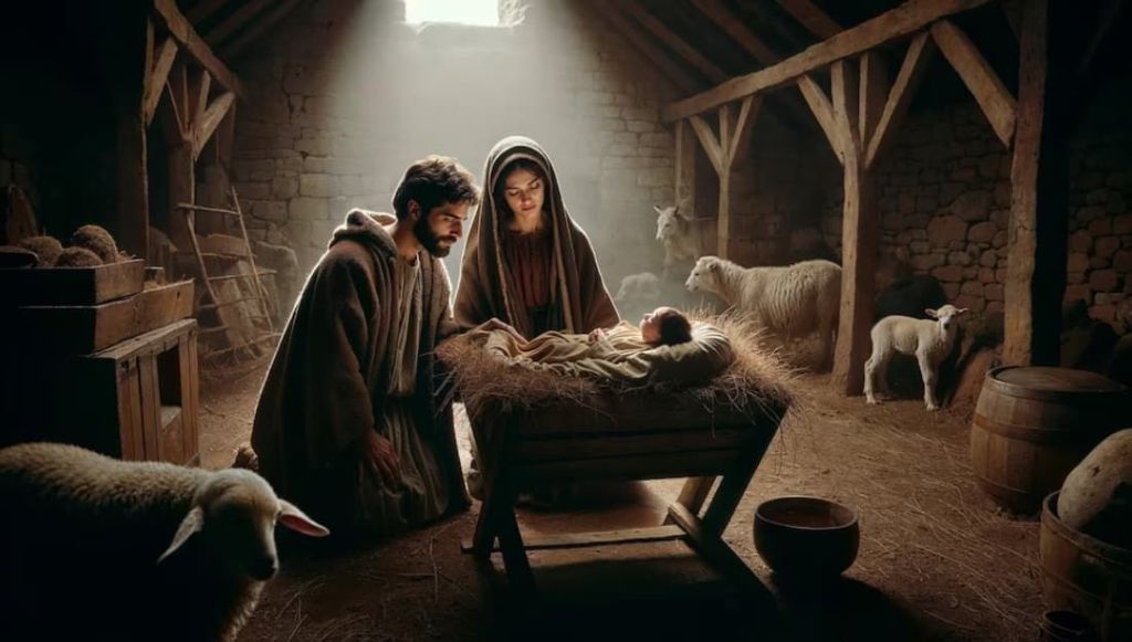 Jesús, con el corazón lleno de agradecimiento, de rodillas al pie de este lecho de paja, os adoro, bendigo y amo, con todo el fervor de mi alma, y me atrevo a levantar mis ojos hasta mi Dios, que se digna mirarme.