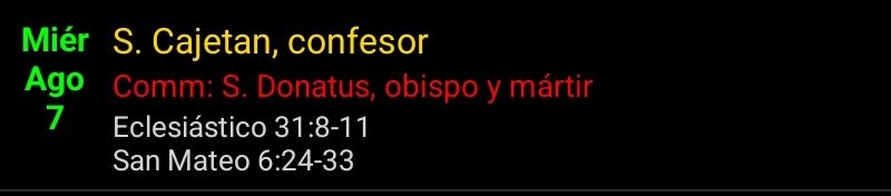 «Nadie puede servir a dos señores; porque aborrecerá a uno y amará al otro; o bien se entregará a uno y despreciará al otro. No podéis servir a Dios y al Dinero. «Por eso os digo: No andéis preocupados por vuestra vida, qué comeréis, ni por vuestro cuerpo, con qué os vestiréis. ¿No vale más la vida que el alimento, y el cuerpo más que el vestido? Mirad las aves del cielo: no siembran, ni cosechan, ni recogen en graneros; y vuestro Padre celestial las alimenta. ¿No valéis vosotros más que ellas? Por lo demás, ¿quién de vosotros puede, por más que se preocupe, añadir un solo codo a la medida de su vida? Y del vestido, ¿por qué preocuparos? Observad los lirios del campo, cómo crecen; no se fatigan, ni hilan. Pero yo os digo que ni Salomón, en toda su gloria, se vistió como uno de ellos. Pues si a la hierba del campo, que hoy es y mañana se echa al horno, Dios así la viste, ¿no lo hará mucho más con vosotros, hombres de poca fe? No andéis, pues, preocupados diciendo: ¿Qué vamos a comer?, ¿qué vamos a beber?, ¿con qué vamos a vestirnos? Que por todas esas cosas se afanan los gentiles; pues ya sabe vuestro Padre celestial que tenéis necesidad de todo eso. Buscad primero el Reino de Dios y su justicia, y todas esas cosas se os darán por añadidura.
