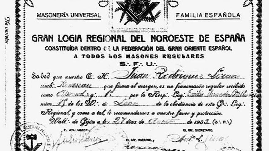 Nombre simbólico Rousseau. Perteneció a la logia leonesa Emilio Menéndez Pallarás no 15, de la Obediencia de la Gran Logia del Noroeste de España. Era aprendiz grado 10 en 1933.