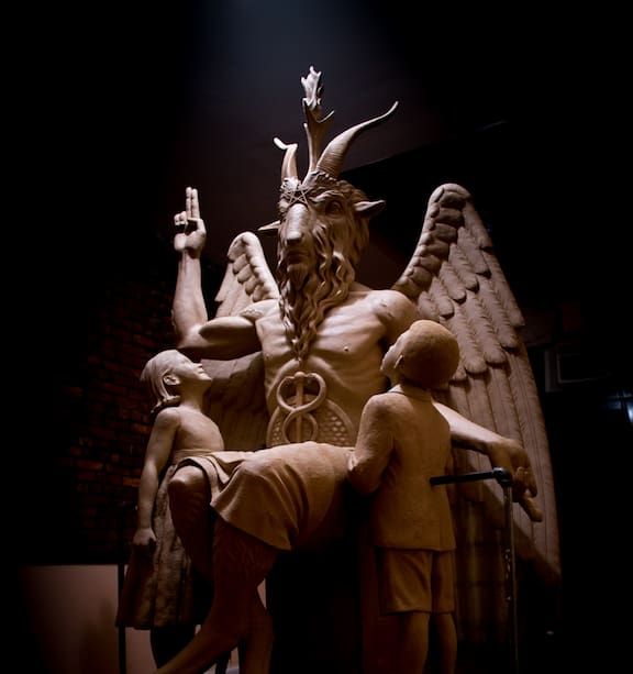Como sigue diciendo Manuel Guerra, en las sectas Satanás y Lucifer <son seres diferentes>, pero, en tal caso, cuando los masones hablan de Lucifer, ¿a quién se refieren? Generalmente lo representan como Baphomet, «dios andrógino», o sea, el dios masculino (falo erecto), femenino (pechos) y teriomórfico o animal (cabeza y cuernos de chivo) [que] según la tradición masónica habría sido venerado en secreto por los templarios medievales […]>. Es decir, su imagen es la de un ser «humano», al menos en su torso (aunque tenga ambos sexos) y brazos, con cabeza y patas de macho cabrío y cuernos bien desarrollados. En otras palabras, una de las representaciones más frecuentes del demonio en la cultura occidental. Y esa divinidad es la que preside ciertos rituales masónicos.
