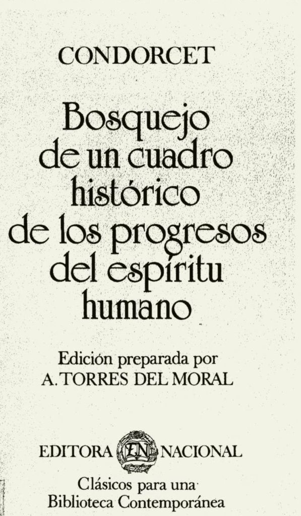 *Según Condorcet, en los filósofos hay que hallar nada menos que el motor mismo de la Revolución francesa: <La filosofía dirigió sus principios, y la fuerza popular destruyó los obstáculos que podíian detener sus movimientos>, El primer motor de esta filosofia, a su vez, lo halla Condorcet en el racionalismo cartesiano: <Desde el momento en que el genio de Descartes imprimió aquel impulso general, primer principio de una revolución en los destinos de la especie humana..> (Bosquejo de un cuadro histórico de los progresos del espíritu humano, pp. 202 y 204).