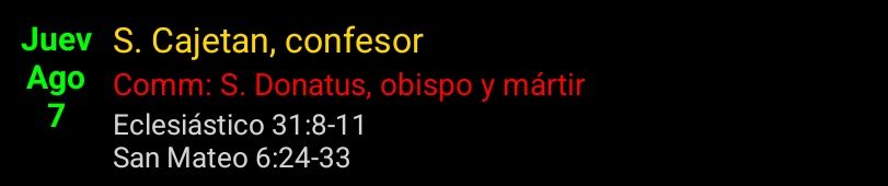«Nadie puede servir a dos señores; porque aborrecerá a uno y amará al otro; o bien se entregará a uno y despreciará al otro. No podéis servir a Dios y al Dinero. «Por eso os digo: No andéis preocupados por vuestra vida, qué comeréis, ni por vuestro cuerpo, con qué os vestiréis. ¿No vale más la vida que el alimento, y el cuerpo más que el vestido? Mirad las aves del cielo: no siembran, ni cosechan, ni recogen en graneros; y vuestro Padre celestial las alimenta. ¿No valéis vosotros más que ellas? Por lo demás, ¿quién de vosotros puede, por más que se preocupe, añadir un solo codo a la medida de su vida? Y del vestido, ¿por qué preocuparos? Observad los lirios del campo, cómo crecen; no se fatigan, ni hilan. Pero yo os digo que ni Salomón, en toda su gloria, se vistió como uno de ellos. Pues si a la hierba del campo, que hoy es y mañana se echa al horno, Dios así la viste, ¿no lo hará mucho más con vosotros, hombres de poca fe? No andéis, pues, preocupados diciendo: ¿Qué vamos a comer?, ¿qué vamos a beber?, ¿con qué vamos a vestirnos? Que por todas esas cosas se afanan los gentiles; pues ya sabe vuestro Padre celestial que tenéis necesidad de todo eso. Buscad primero el Reino de Dios y su justicia, y todas esas cosas se os darán por añadidura.