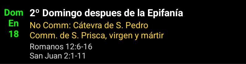 Tres días después se celebraba una boda en Caná de Galilea y estaba allí la madre de Jesús. Fue invitado también a la boda Jesús con sus discípulos Y no tenían vino, porque se había acabado el vino de la boda. Le dice a Jesús su madre: «No tienen vino.» Jesús le responde: «¿Qué tengo yo contigo, mujer? Todavía no ha llegado mi hora.» Dice su madre a los sirvientes: «Haced lo que él os diga.» Había allí seis tinajas de piedra, puestas para las purificaciones de los judíos, de dos o tres medidas cada una Les dice Jesús: «Llenad las tinajas de agua.» Y las llenaron hasta arriba. «Sacadlo ahora, les dice, y llevadlo al maestresala.» Ellos lo llevaron. Cuando el maestresala probó el agua convertida en vino, como ignoraba de dónde era (los sirvientes, los que habían sacado el agua, sí que lo sabían), llama el maestresala al novio y le dice: «Todos sirven primero el vino bueno y cuando ya están bebidos, el inferior. Pero tú has guardado el vino bueno hasta ahora.» Tal comienzo de los signos hizo Jesús, en Caná de Galilea, y manifestó su gloria, y creyeron en él sus discípulos.