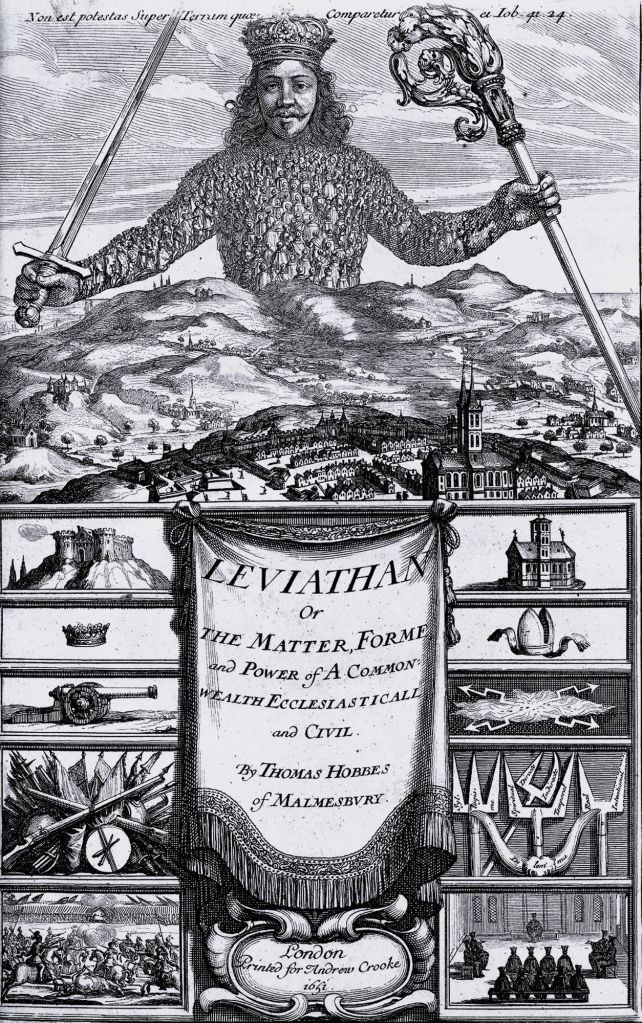 La misma formación del Estado moderno puede leerse, según Voegelin, como el avance de la religión política. No es una casualidad que el más célebre símbolo del que se valió el Estado moderno para autocomprenderse haya sido el Leviatán. La imagen del Leviatán, un monstruo bíblico del que podemos leer en Job, la tomó Thomas Hobbes, el filósofo político más importante del siglo xvi, para caracterizar y justificar al Estado absoluto de su tiempo. Según la filosofia de Hobbes, el cuerpo político se funda a sí mismo, se origina en sí, a través de un pacto entre individuos que da lugar a una persona colectiva. La multiplicidad, caótica y peligrosa, deviene ahora unidad, y un soberano detentará el poder absoluto sobre todos esos individuos que, de otra manera, se matarían entre ellos en guerras de todos contra todos. Si bien esta unidad todavía encuentra a Dios por encima suyo, el Estado ya no está separado de la Iglesia como institución, sino que él mismo se convierte en Iglesia. Así lo ilustra la célebre tapa del libro de Hobbes: el Leviatán sostierne la espada en una mano, y el cetro en la otra. La interpretación religiosa depende también del soberano, que por algo es absoluto. Explica al respecto Voegelin: «El contrato de gobierno del que habla Hobbes crea el Estado como persona histórica, como Mortal God, como Dios en la tierra, al que los hombres deben, junto al Immortal God o Dios eterno, paz y seguridad»