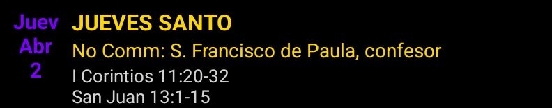 Antes de la fiesta de la Pascua, sabiendo Jesús que había llegado su hora de pasar de este mundo al Padre, habiendo amado a los suyos que estaban en el mundo, los amó hasta el extremo. Durante la cena, cuando ya el diablo había puesto en el corazón a Judas Iscariote, hijo de Simón, el propósito de entregarle, sabiendo que el Padre le había puesto todo en sus manos y que había salido de Dios y a Dios volvía, se levanta de la mesa, se quita sus vestidos y, tomando una toalla, se la ciñó. Luego echa agua en un lebrillo y se puso a lavar los pies de los discípulos y a secárselos con la toalla con que estaba ceñido. Llega a Simón Pedro; éste le dice: «Señor, ¿tú lavarme a mí los pies?» Jesús le respondió: «Lo que yo hago, tú no lo entiendes ahora: lo comprenderás más tarde.» Le dice Pedro: «No me lavarás los pies jamás.» Jesús le respondió: «Si no te lavo, no tienes parte conmigo.» Le dice Simón Pedro: «Señor, no sólo los pies, sino hasta las manos y la cabeza.» Jesús le dice: «El que se ha bañado, no necesita lavarse; está del todo limpio. Y vosotros estáis limpios, aunque no todos.» Sabía quién le iba a entregar, y por eso dijo: «No estáis limpios todos.» Después que les lavó los pies, tomó sus vestidos, volvió a la mesa, y les dijo: «¿Comprendéis lo que he hecho con vosotros? Vosotros me llamáis `el Maestro’ y `el Señor’, y decís bien, porque lo soy. Pues si yo, el Señor y el Maestro, os he lavado los pies, vosotros también debéis lavaros los pies unos a otros Porque os he dado ejemplo, para que también vosotros hagáis como yo he hecho con vosotros.