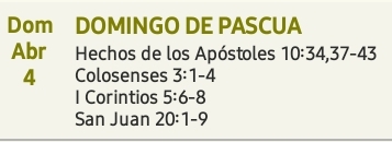 EL primer día de la semana, María la Magdalena fue al sepulcro al amanecer, cuando aún estaba oscuro, y vio la losa quitada del sepulcro.